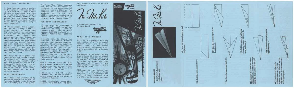 Tru-Flite Kits was a solo exhibition presented within a vitrine in the Alberta Aviation Museum in 1997. This site-specific installation suggests an economy of scale within the environs of museum collecting.